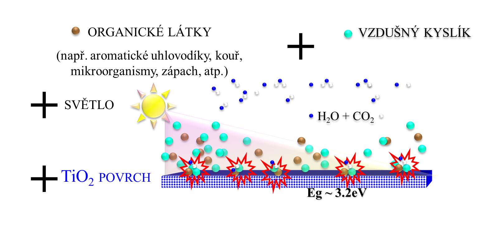 Predstavte si platničku rozpálenú na teplotu dosahujúcu teplotu mnoho tisíc stupňov Celzia. Pokiaľ na ňu dopadne malý kúsok organického materiálu, vo vzdušnom prostredí okamžite zhorí a rozloží sa až na základné minerálne komponenty. Na platničke sa nič neusadí. Podobne, ale pri izbovej teplote, fungujú naše funkčné nátery FN NANO®. Túto schopnosť im dodávajú mikroskopické kryštáliky polovodiča oxidu titaničitého (TiO2) a fyzikálny jav fotokatalýza, poháňaný svetlom.