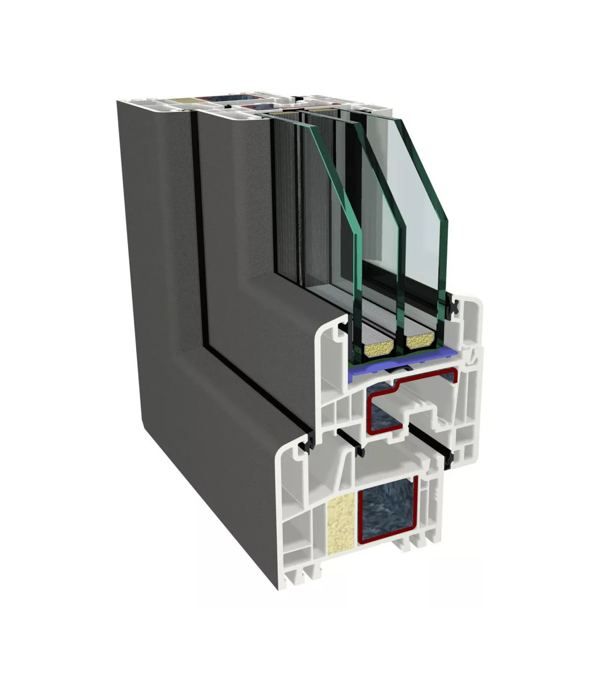 Má 6-komorový profilový systém so stredovým tesnením a poskytujú tak výborné tepelno-izolačné vlastnosti, vysokú zvukovú izoláciu a odolnosť voči vlámaniu.