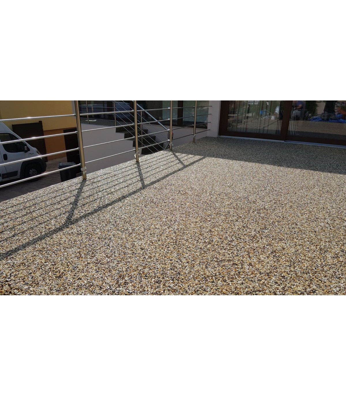 Kamenné koberce sú zmesou prírodného kameniva a špeciálnej živice. Táto kombinácia zaručí vysokú pevnosť povrchu a maximálnu odolnosť voči vonkajším vplyvom.